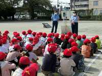 さいたま市の交通安全指導員の方々をお招きして、交通安全教室を実施しました。横断歩道のわたり方や狭い道路の歩き方等、上小小学校の学区ににあった内容でご指導いただきました。