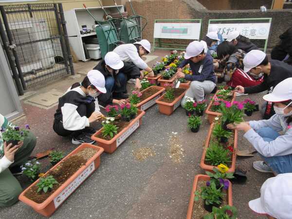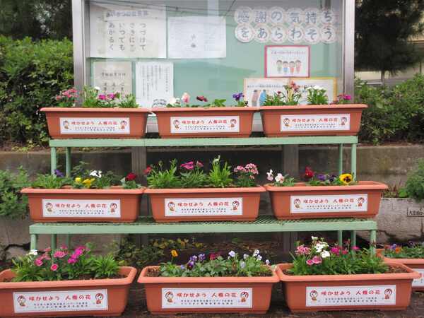 花と緑の委員会の児童が代表で、「人権の花運動」に参加しました。校門の前が明るくなりました。大切に育てていきます。