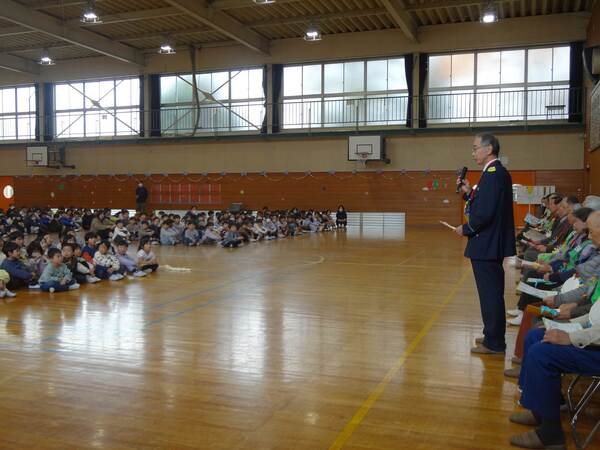 地域の方々をお招きして感謝する会を開きました。いつも見守ってくださっている地域の方々に、日頃の感謝を込めてペンダントと手紙、そして歌(校歌)をプレゼントをしました。